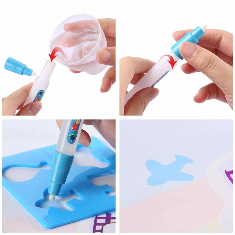 دع إبداعه يظهر على بساط الرسم المائي: يرسم بالقلم المائي، تظهر الألوان، تختفي بعد دقائق… وتبدأ المتعة من جديد!